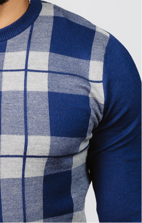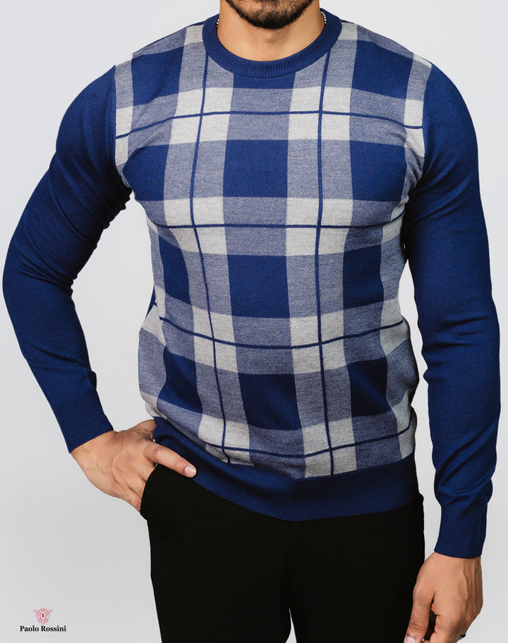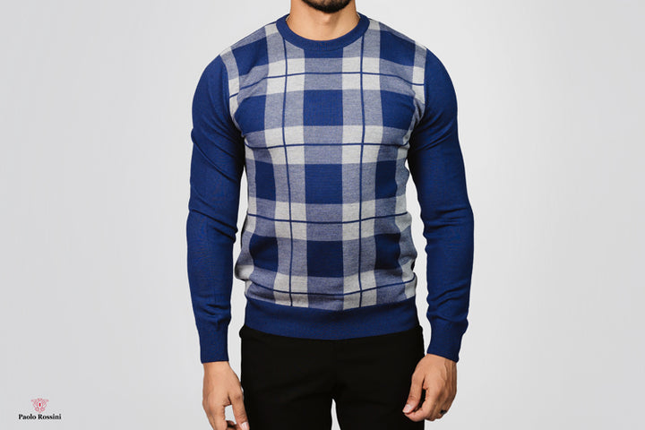 Regular Fit Crew Neck check Knitwear Pullover. 100% fine wool
