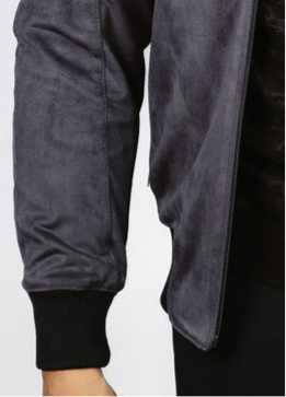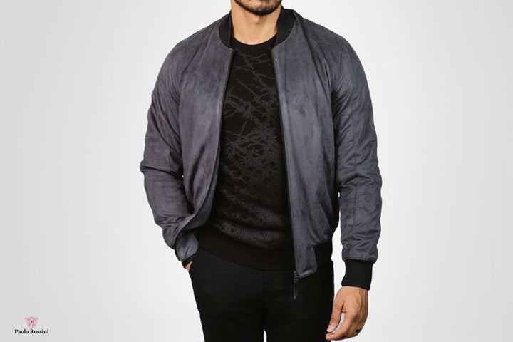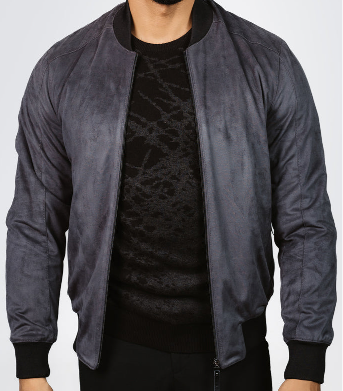 Regular Fit College Collar Bomber Suede Jacket
