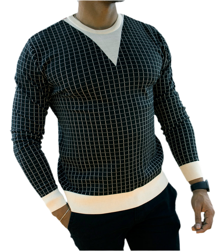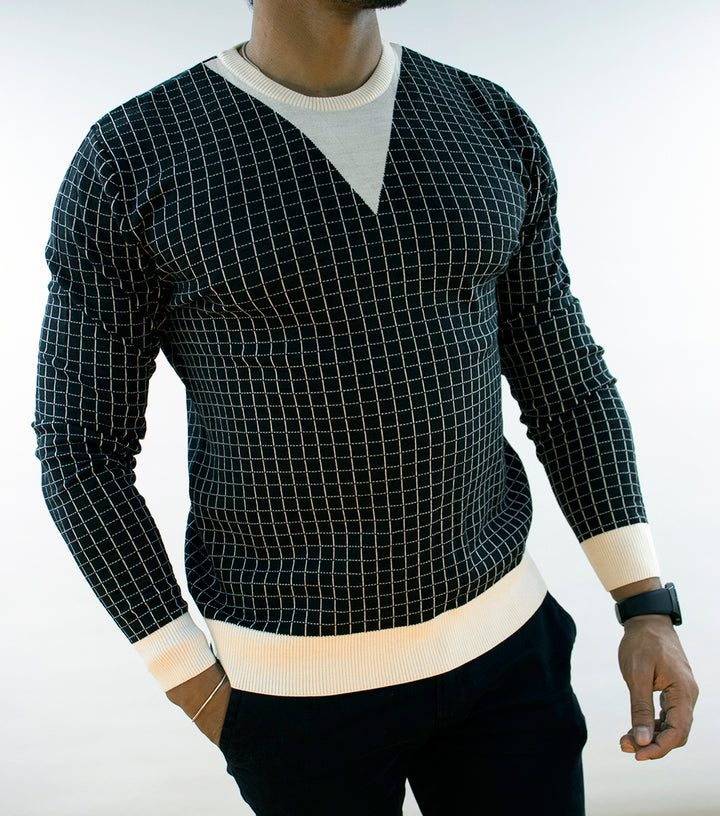 Regular Fit Crew Neck check Knitwear Pullover. 100% fine wool